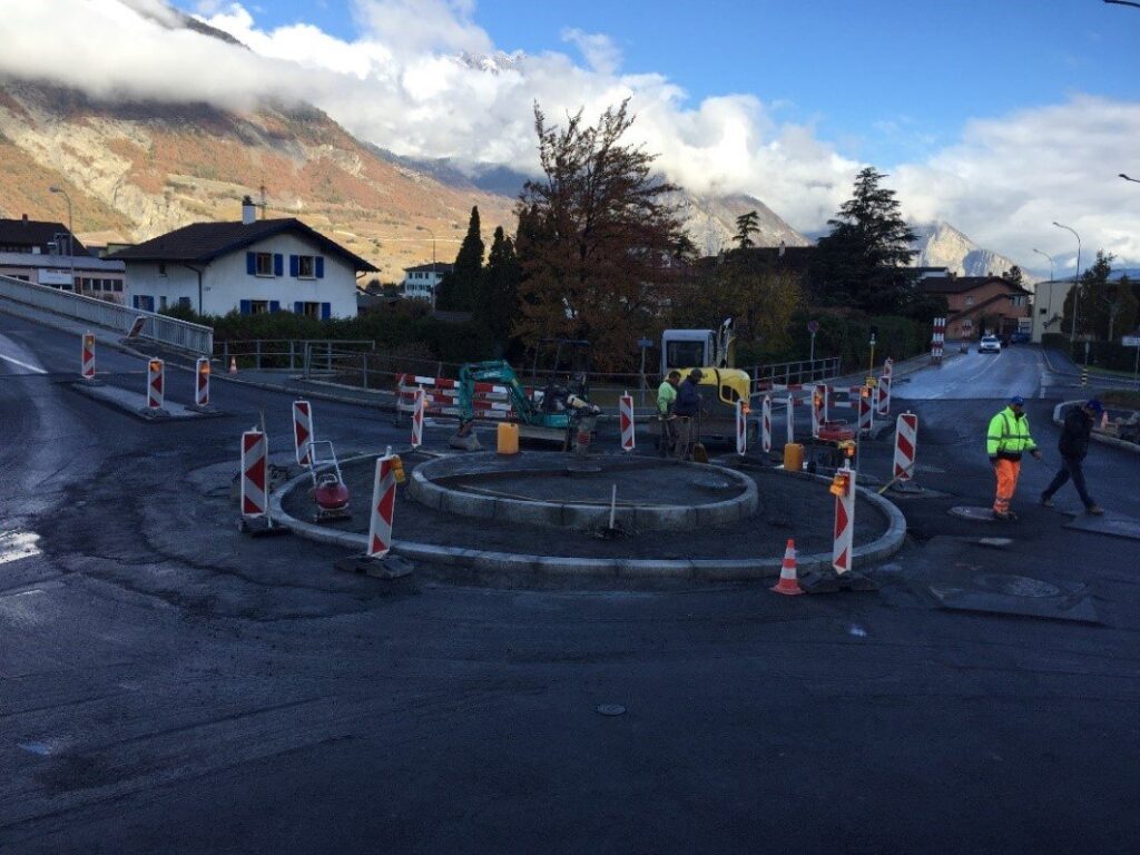 La construction d’un nouveau giratoire sur l’Avenue de la Jonction à Saxon a permis de réguler le trafic automobile et piéton.
